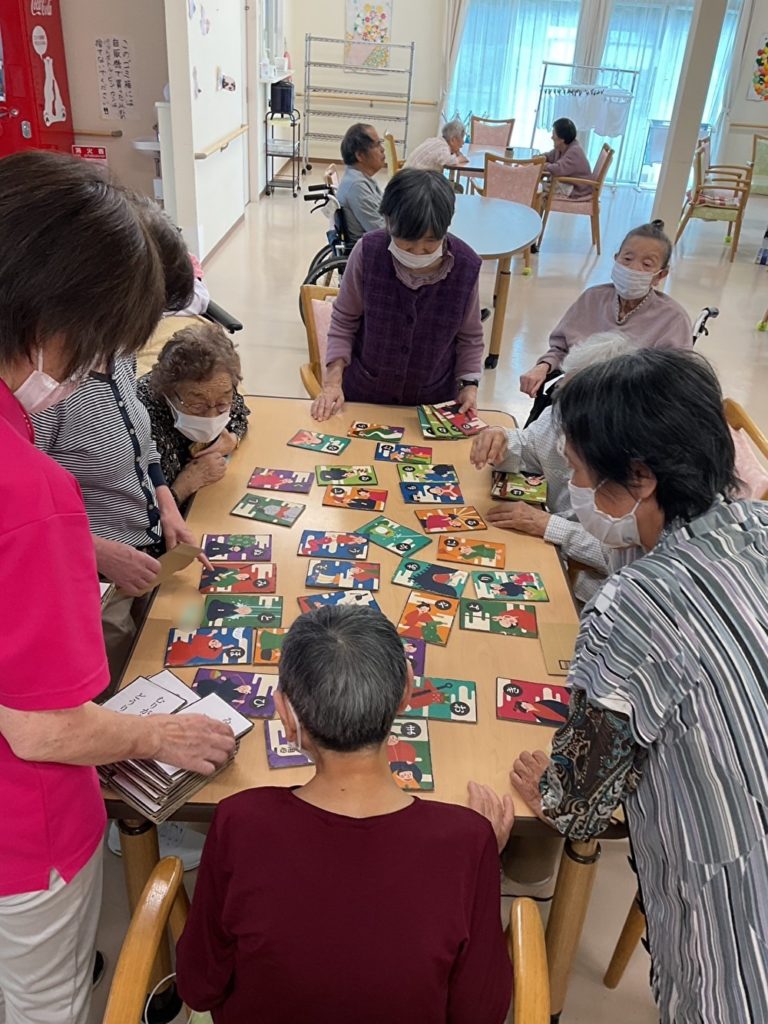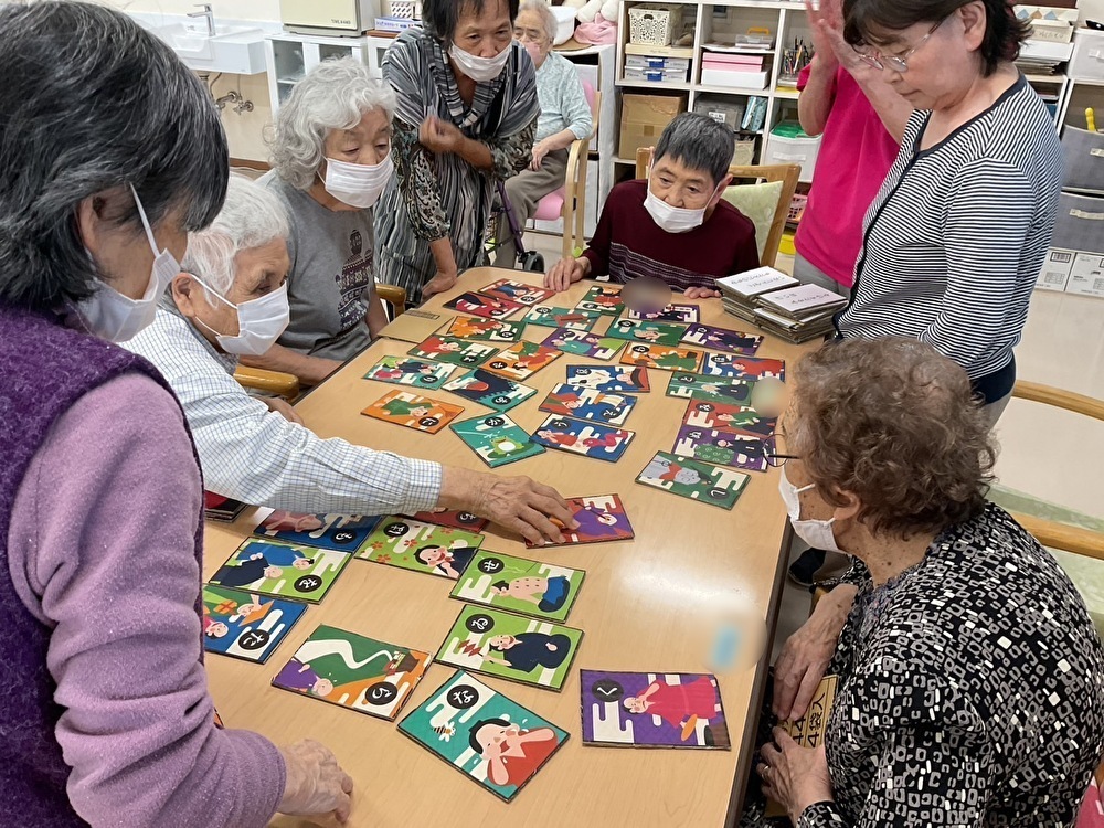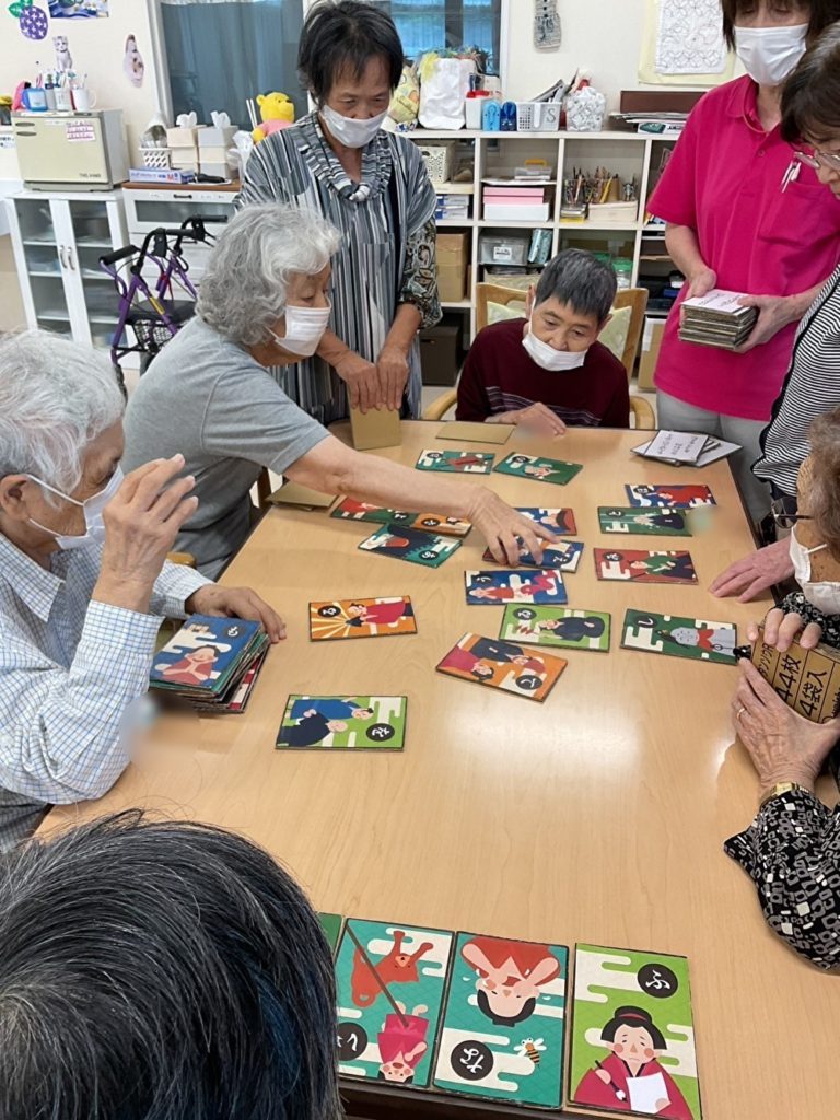 最近、お昼ごはんが終わり一息つくと、みんなでかるた大会が始まります(^^)