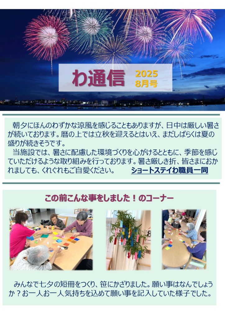 地域への和み(わ)の提供、福祉活動を通し地域の輪(わ)が広がるような環境づくり。